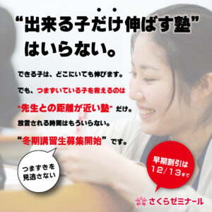 冬期講習の募集スタート 「もっと早くここに来れば…」一番多い声です。